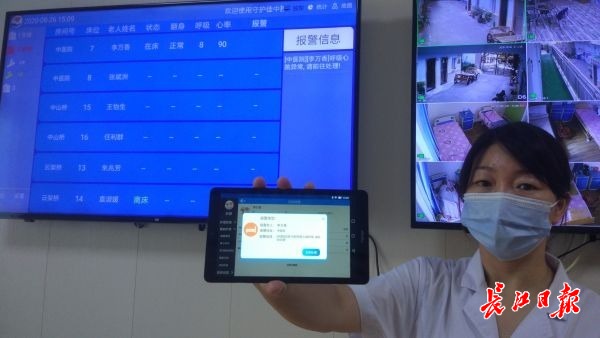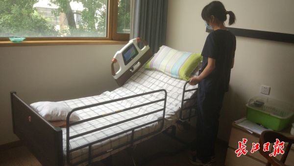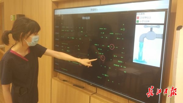 夜间老人离床5分钟左右,离床感应系统就会发出警报。几年前,江岸区社会福利院为减少老人夜间起床后出现意外的风险,引入了智能床垫和离床感应系统。