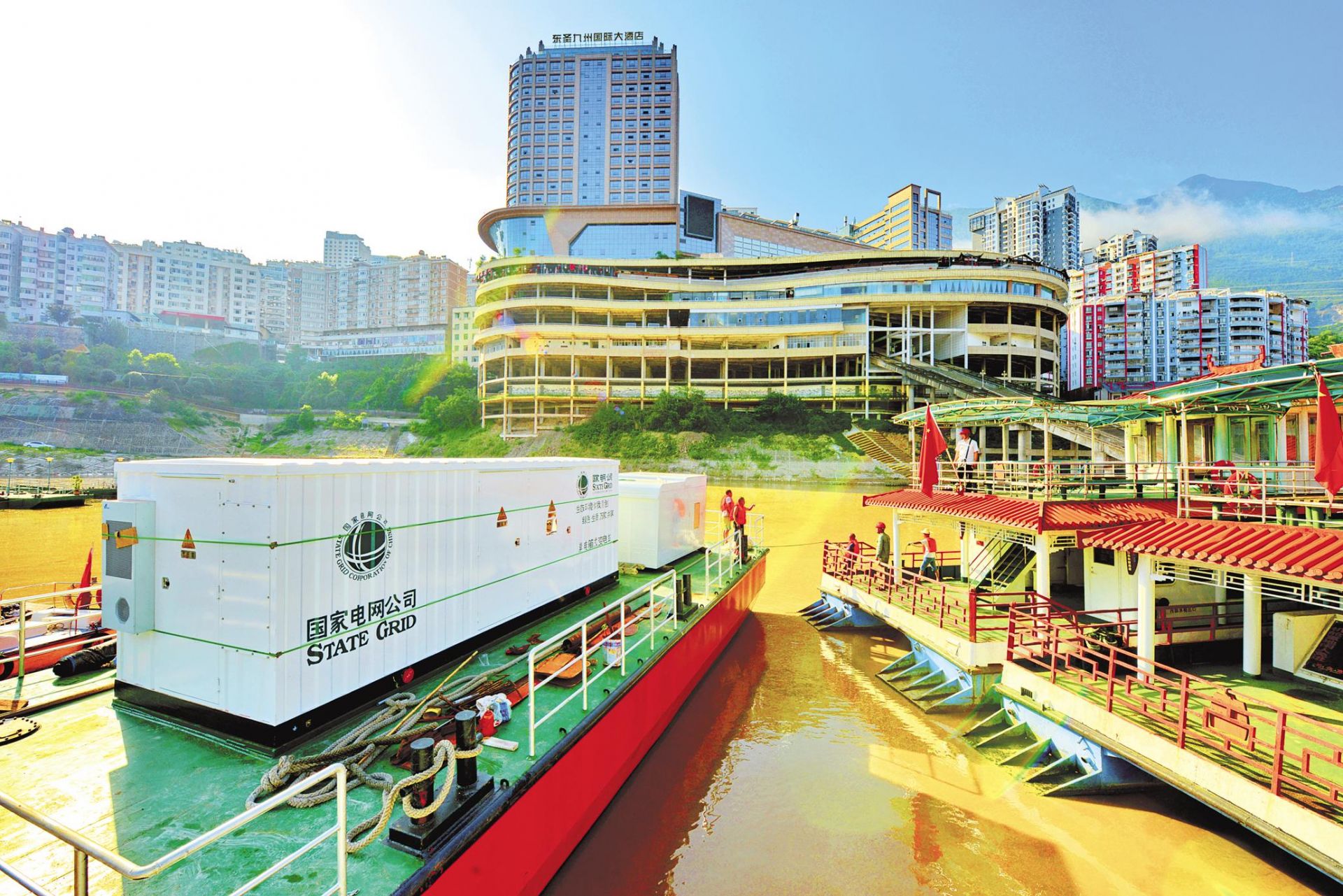 8月26日,两艘供电趸船载着岸电箱式变电站、电缆管理装置等港口岸电主设备,安全运抵长江巴东岩背旅游码头指定位置。