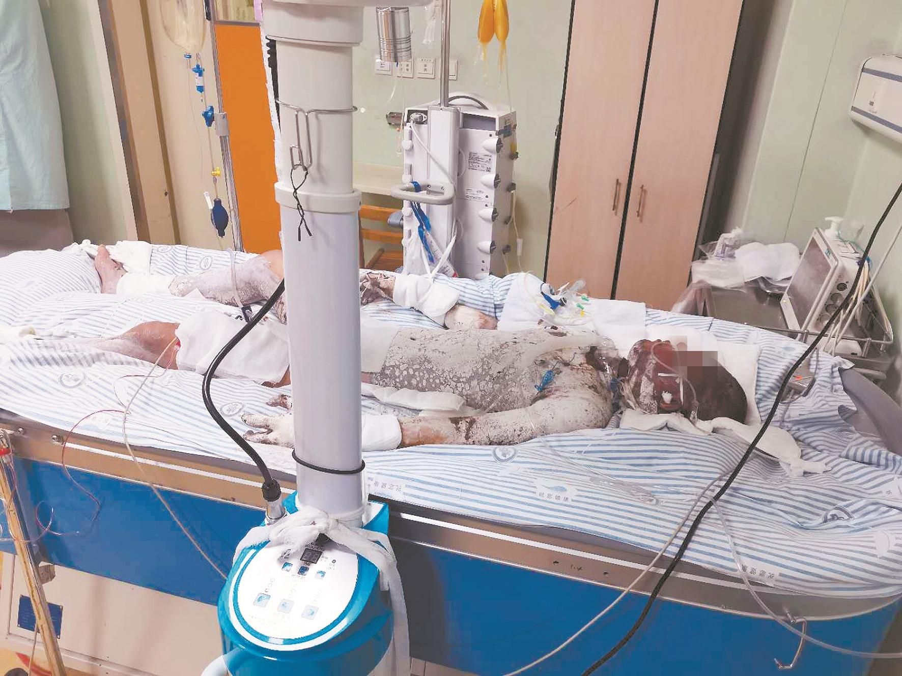 昨日,小倪的管床医生告诉记者,小倪的烧伤面积达到85%以上,尚未脱离危险期。
