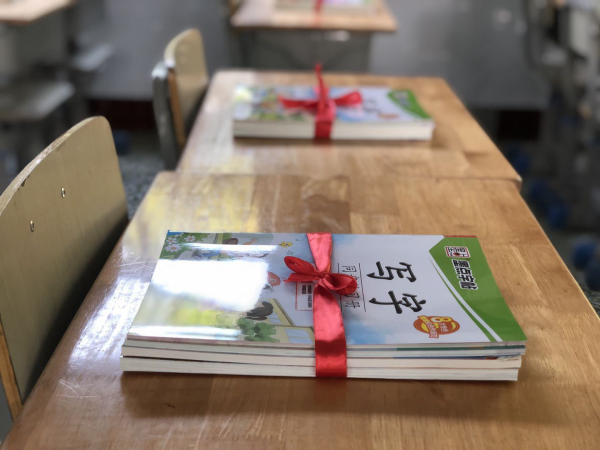 孩子们的新课本被老师们包装成了礼物的样子。校方供图