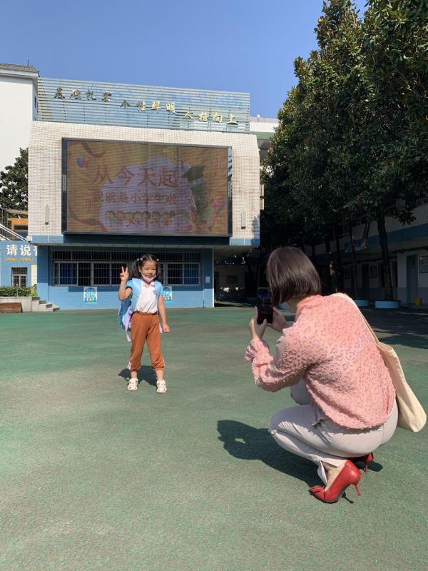 “学校好干净,好好看呀!我喜欢学校。”一年级新生小谈开心地说。