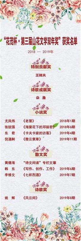 据悉,“山花文学双年奖”看重文本和艺术性,授奖以来反响良好,被誉为国内“最纯粹的文学奖”。李修文曾获鲁迅文学奖、春天文学奖、茅盾文学新人奖等多种奖项,编剧作品曾获大众电视金鹰奖,现为湖北省作家协会主席、武汉市作家协会主席。本届“双年奖”,共评选出了10名获奖者。王祥夫获“特别贡献奖”,朵渔获“诗歌成就奖”,尤凤伟、张锐强、东君、倪湛舸获“小说奖”,黄德海、韩东、李修文获“散文奖”,姚辉获“诗歌奖”。