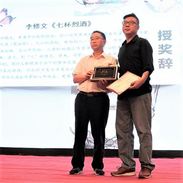 湖北日报讯(记者别鸣)8月28日下午,“第三届山花文学双年奖”颁奖典礼在贵州省遵义市举行。著名作家、湖北省作协主席李修文作品《七杯烈酒》获山花文学双年奖“散文奖”。