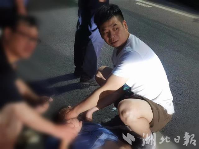湖北日报讯(记者雷巍巍、通讯员杜强、李晶晶)8月27日19时20分许,长阳县城清江大道发生一起车祸,26岁小伙小葛被急驰的摩托车撞倒在路边,意识全无。正在附近散步的长阳县人民医院麻醉科医生曹亚力、李贵雨夫妇闻讯赶到,跪地施救10多分钟,为拯救生命赢得宝贵时间。