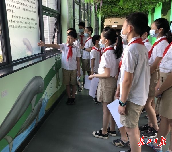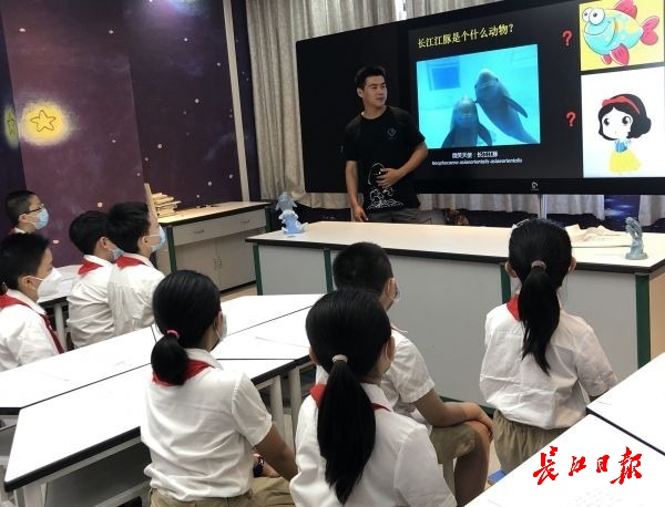 长江网8月29日讯(记者高宝燕 通讯员邓晓君)石燕拂云晴亦雨,江豚吹浪夜还风。学生们朗颂着描写江豚的古诗。8月29日,在武汉市生态环境局和武汉白鱀豚保护基金会支持下,守护江豚示范学校长春街小学的科学教室里,主题为留住江豚微笑的开学第一课开讲啦。