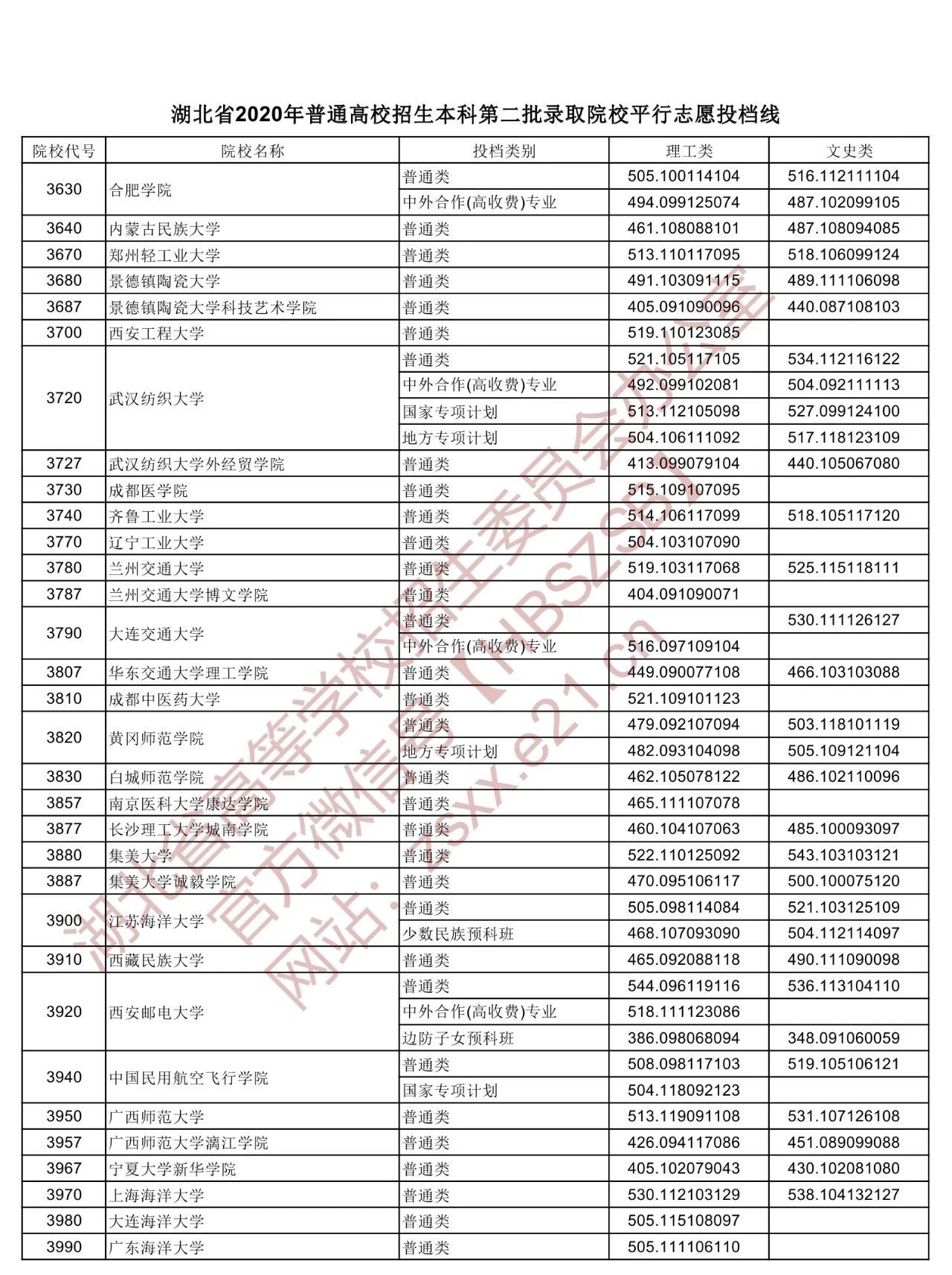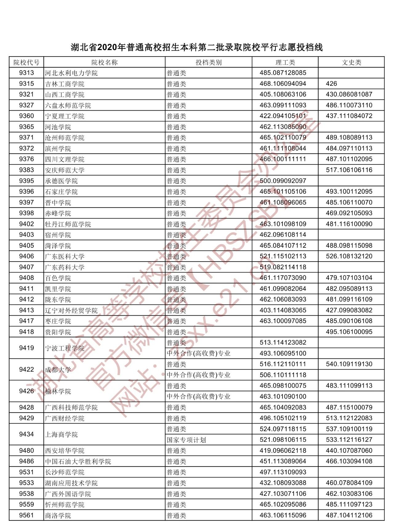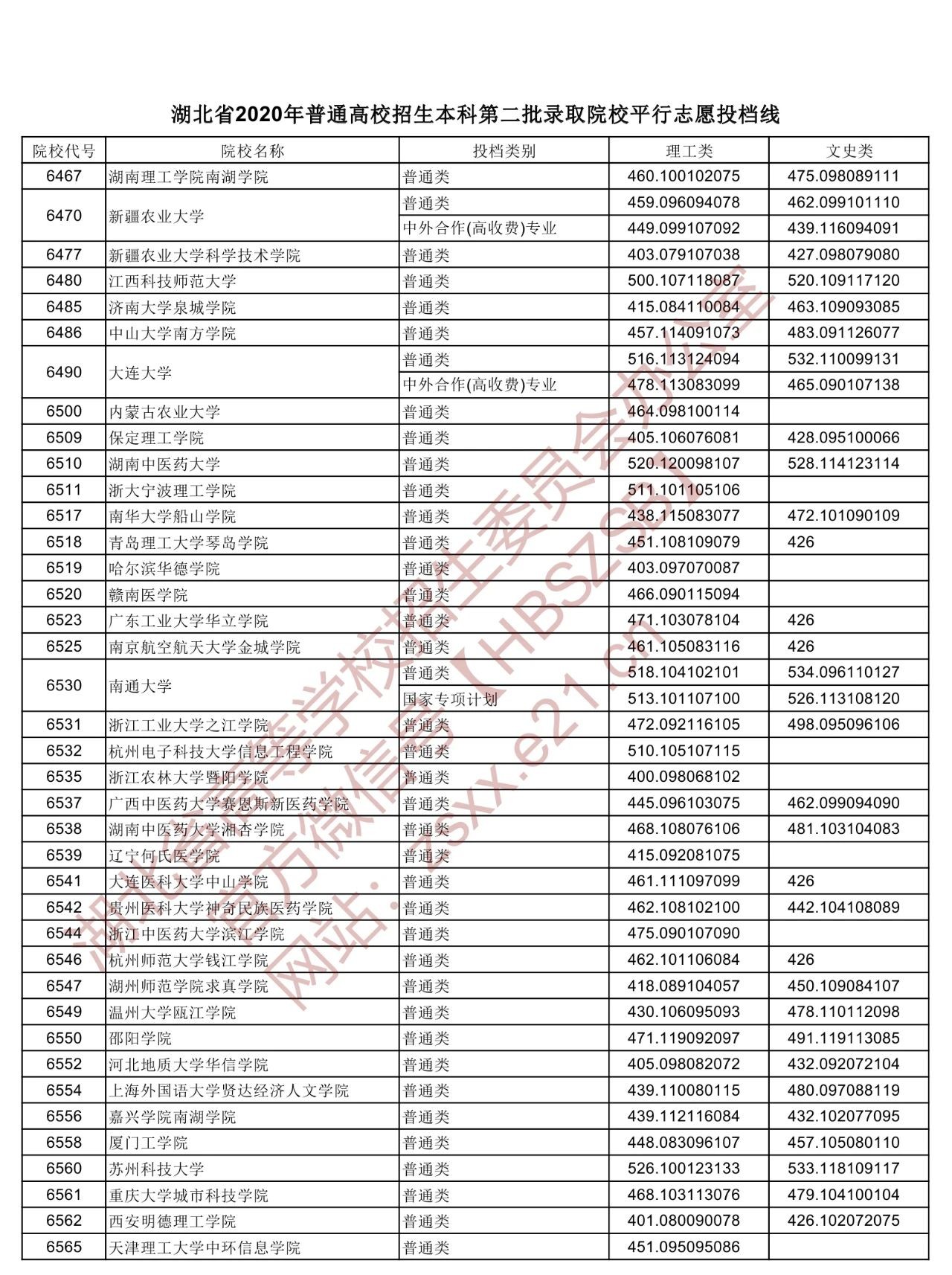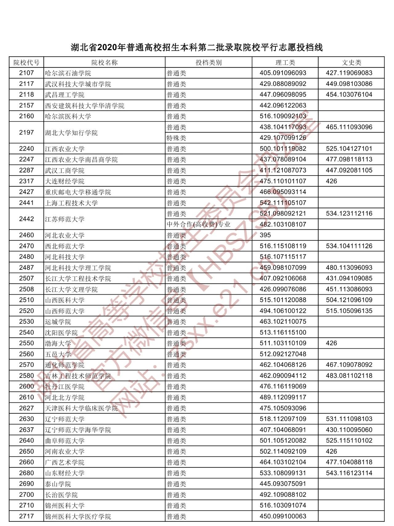 本科第二批平行志愿投档时,分别将理工类、文史类按考生投档排序成绩从高分到低分排序,投档排序成绩为:(高考文化总分+优录加分)+语文×10-3+数学×10-6+外语×10-9;再按排序先后从高分到低分依次投档,投档比例为招生计划的100%。对单个考生投档时,按照考生填报的院校志愿顺序依次检索投档(有分类投档专业或专业类的院校,还要依次检索考生的专业志愿),当计算机检索到考生填报的院校(专业或专业类)有计划空缺时,考生档案即投到这个院校(专业或专业类)。考生总分相同时,按语、数、外单科成绩依次排序。