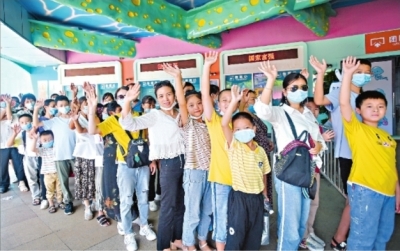 正是暑期游的最后一个周末,两个大型旅游团队里,亲子家庭都很多,其中湖北康辉国际旅行社组织的700多人旅行团队里,孩子有近200名。中青旅组织的近900名游客也以亲子家庭为主。