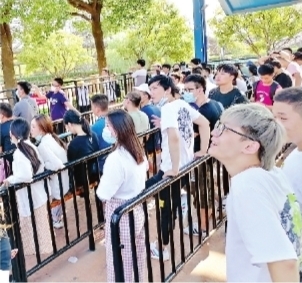 “整个暑假,小孩都心心念念要来欢乐谷玩,今天终于来了,和他一起玩了最刺激的‘木翼双龙’,非常开心。”29日上午,从襄阳组团来玩的张先生带着上初中的儿子体验了一次木质过山车的欢乐刺激,“还有两三天就要开学了,给他的暑假来一个欢快的收尾。”在欢乐谷,园中的“木翼双龙”“极速飞车”“激流勇进”“天地双雄”等体验感强的游玩项目,最受欢迎。
