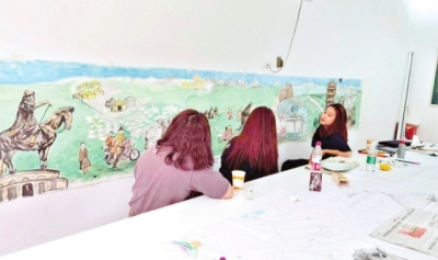 “觉得她们的想法特别好,可以作为进入大学前创作的锻炼和突破。”盛焰结合主题,建议3人采用长卷水墨重彩国画的形式,“表达两国人民的友谊,大幅作品能更好地体现主题的厚重感。”