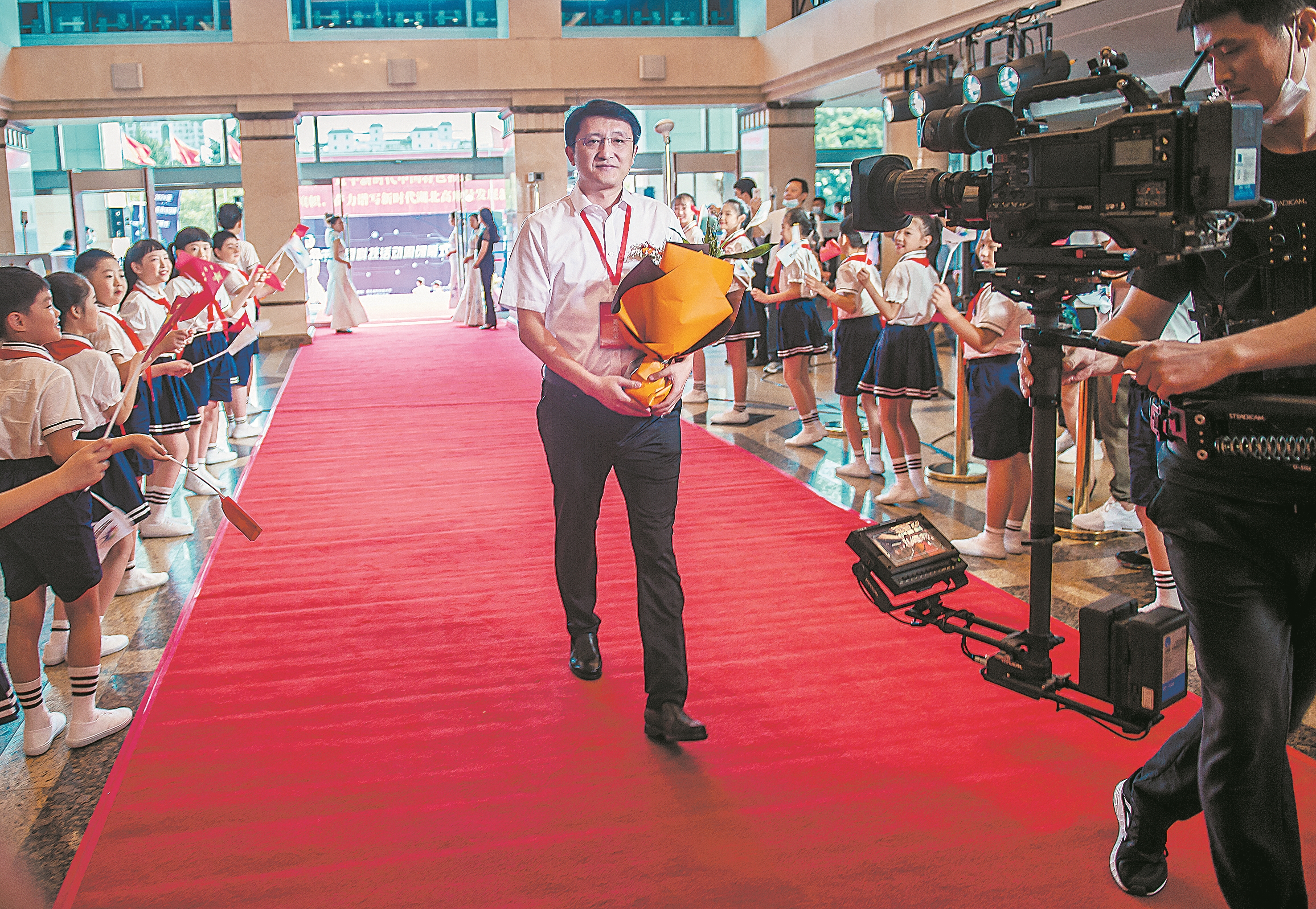昨日的全国科技周闭幕式上,段凯作为科学家代表第一个通过红毯步入会场