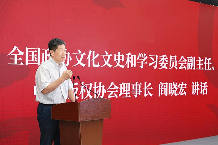 全国政协文化文史和学习委员会副主任、中国版权协会理事长阎晓宏在中国版权协会文字版权工作委员会成立仪式上。活动方供图