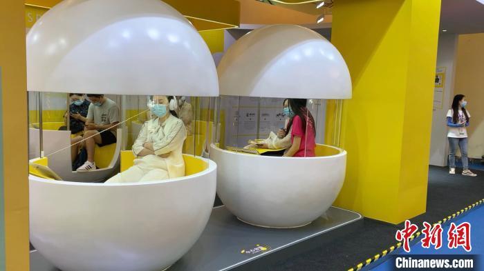 书展中,读者在“时间胶囊”内感受沉浸式视听体验。 周卓傲 摄