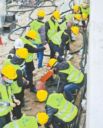2月2日,山河集团突击队员在雷神山医院工地现场。