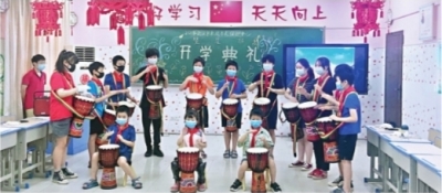 武汉晚报体(记者关馨 通讯员尤小苏)“全体起立!奏国歌,少先队员敬队礼。”9月1日,武汉市救助管理站未成年人楚星教育班和武汉中小学正式开学。敬礼唱国歌、表演非洲鼓、荧光手影舞、领取新学期课本和文具……二十余位孩子在典礼上开心比“耶”,庆祝开学。