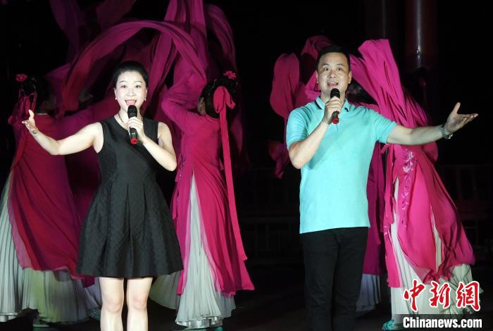 福州闽剧艺术传承发展中心、中国戏曲梅花奖得主吴则文,国家一级演员黄秀春共同演唱闽剧戏歌《袖舞幸福城》。 记者刘可耕 摄