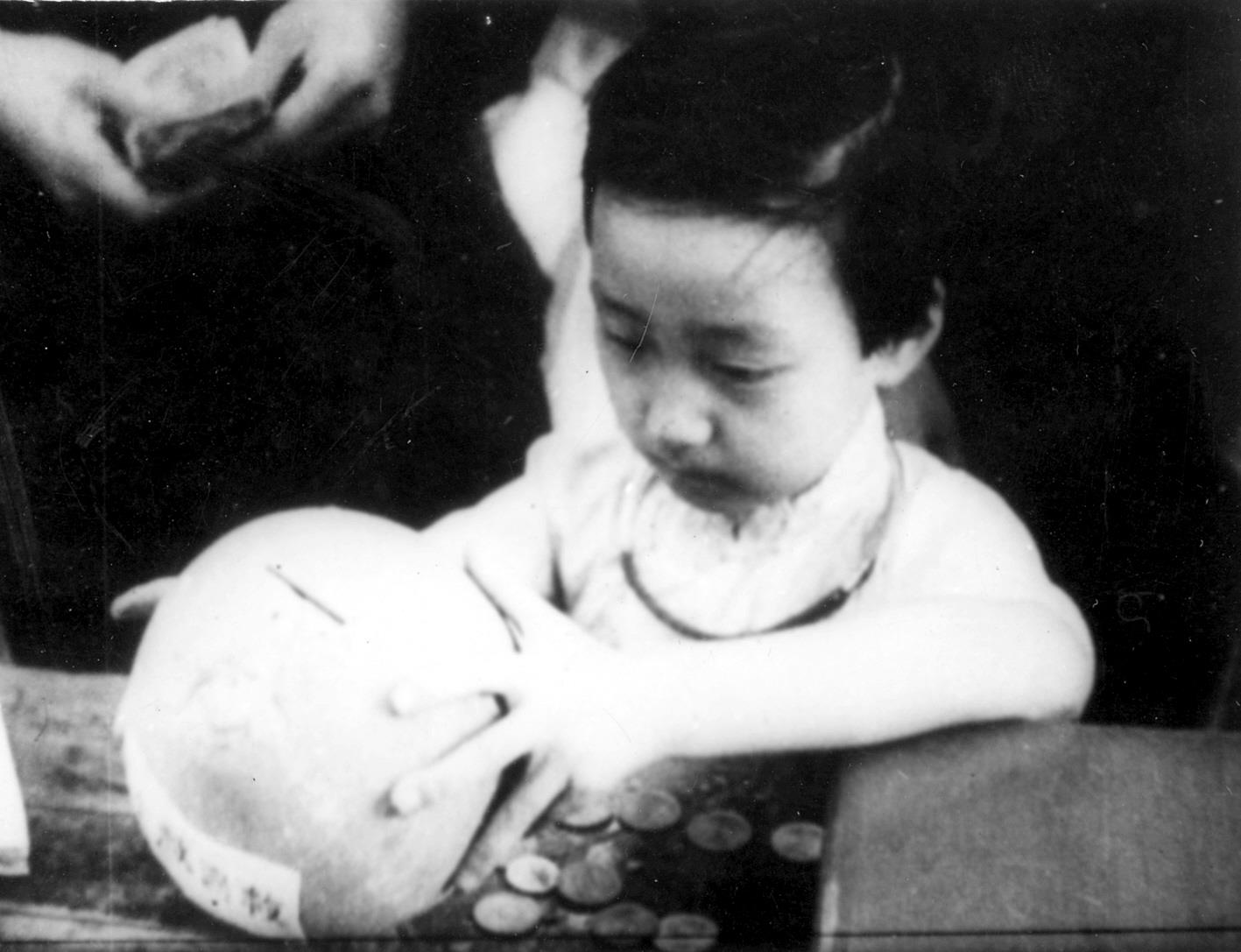 儿童倒出存钱罐里的零用钱捐出。 (八路军武汉办事处旧址纪念馆供图)