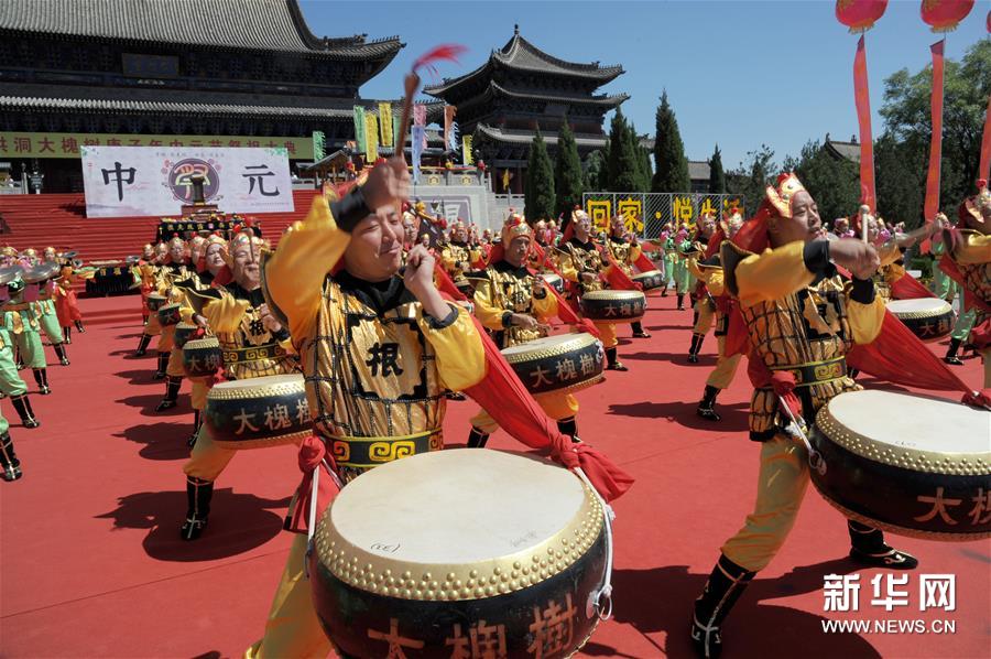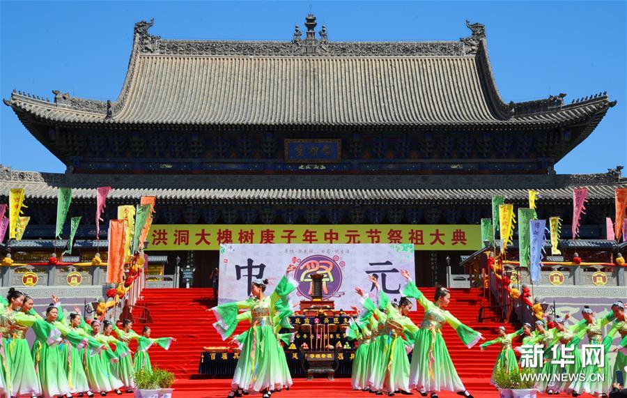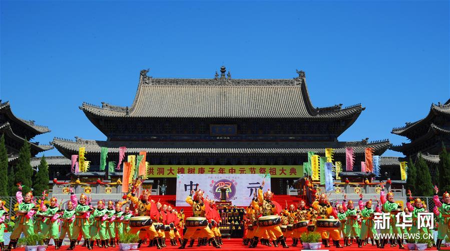 9月2日,演员在中元节祭祖活动中表演。当日,山西省洪洞县大槐树寻根祭祖园举行中元节祭祖活动。新华社记者 马毅敏 摄