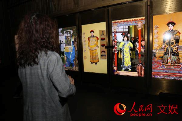 观众在“发现·养心殿——主题数字体验展”的穿搭服饰区域体验体感试衣。人民网 刘喆摄