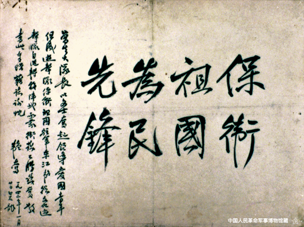 邹韬奋为曾生题词“保卫祖国 为民先锋”