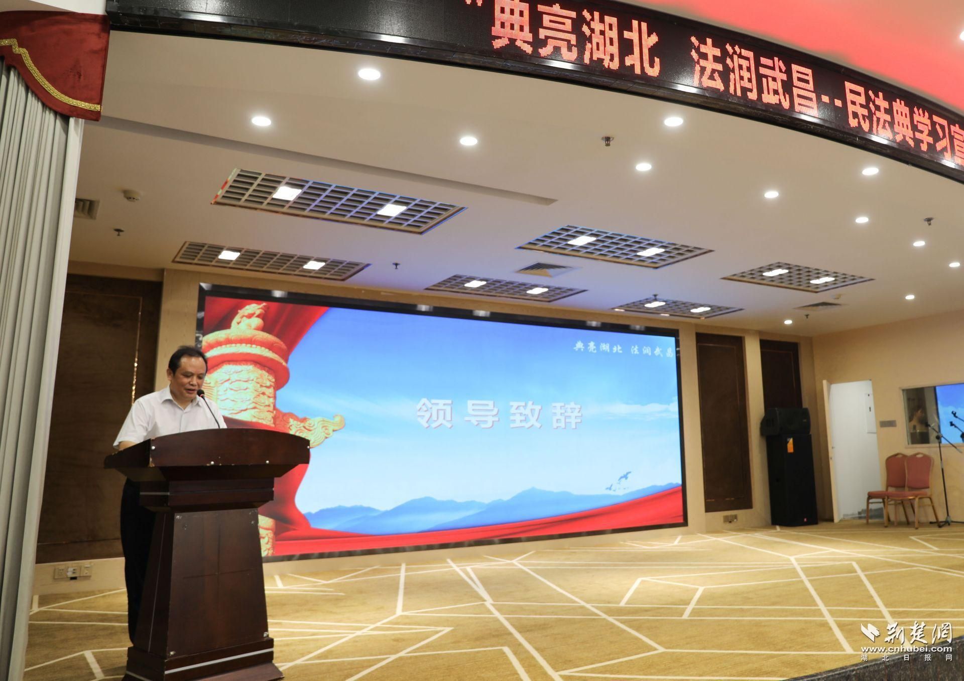 湖北省司法厅副厅长刘嗣元为活动致辞。他表示,民法典是一部以“民”命名、以民为本的法典,在落实过程中,一定要紧贴群众需求、回应群众关切,实施精准普法,指导广大社区居民学习运用民法典保护自身权益,帮助社区群众依法解决涉及的“闹心事”“烦心事”“揪心事”,推动惠民、便民、助民举措落地,全力构建和谐社会,努力护航美好生活。