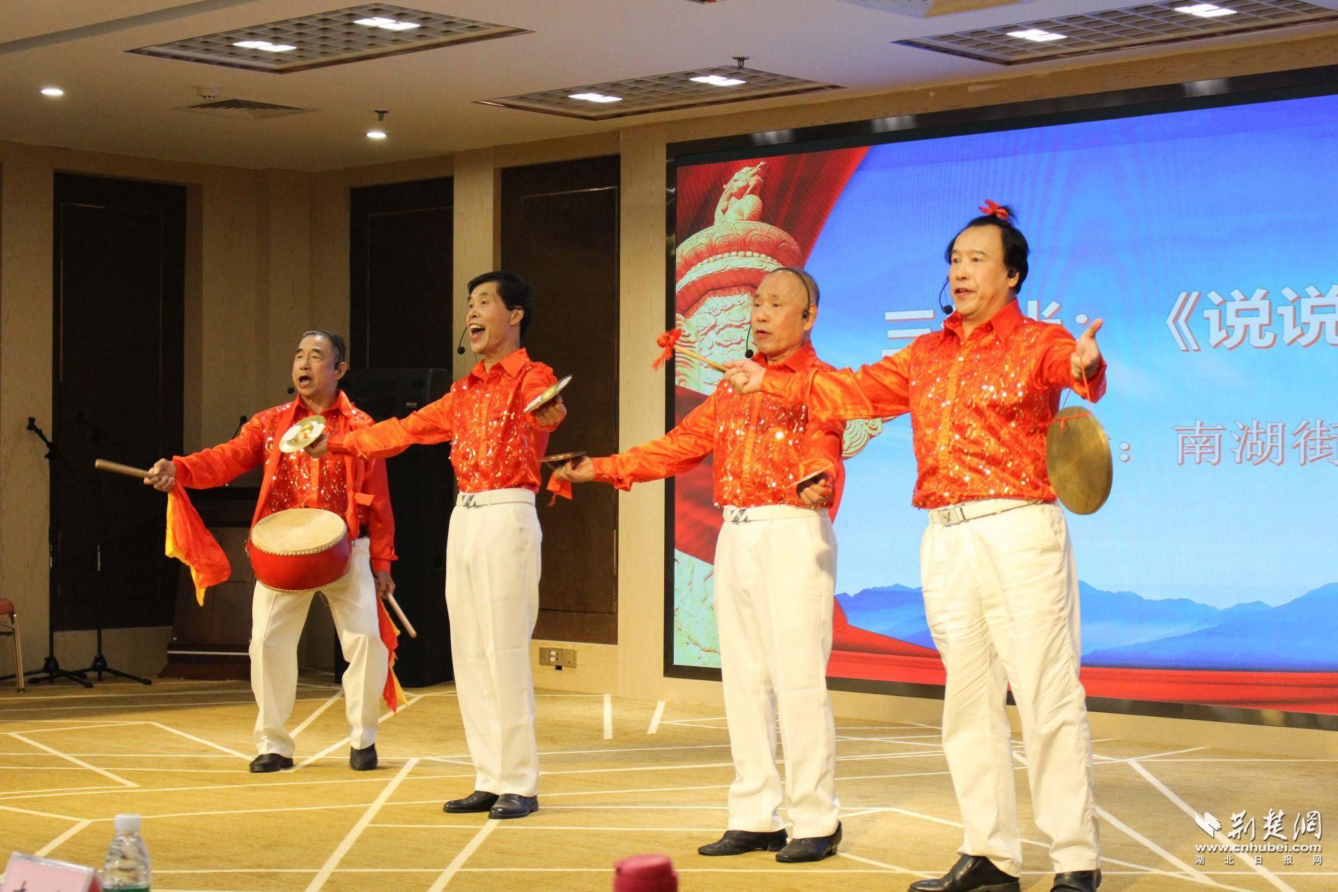 “小王家族分遗产,肚中宝宝未露脸,胎儿也有继承权,怎能免!”启动仪式上,武昌区司法局、社区居民、律师、司法工作者共同打造了一场民法典主题文艺演出,南湖街老年大学演出队的三句半《说说我们的民法典》用通俗易懂的普法案例宣传民法典,获得满堂喝彩。