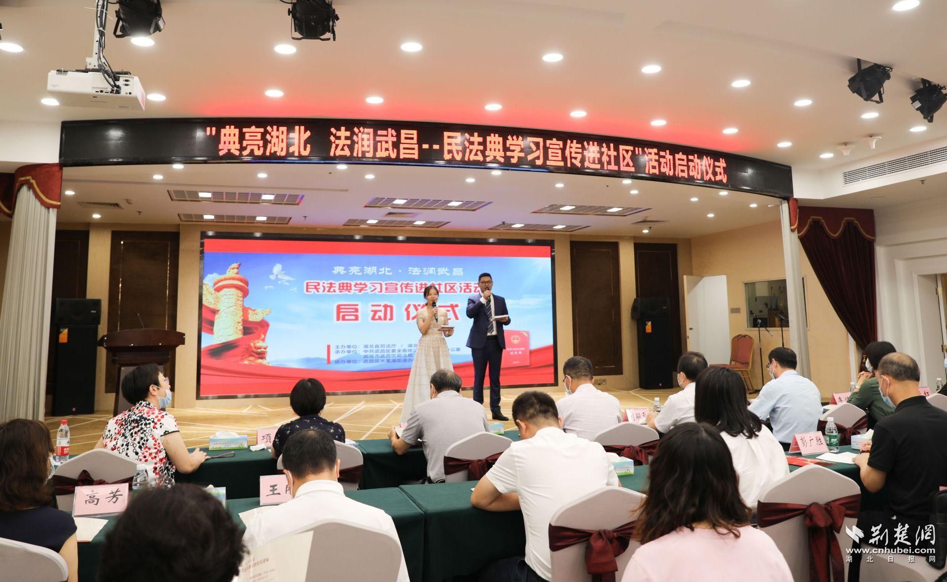 荆楚网客户端—荆楚网消息(记者肖慧婷)为推动全民学习宣传民法典、构建和谐社区,引导居民群众充分认识学习宣传民法典的重大意义,9月3日上午,由湖北省司法厅、湖北省普法办主办的“典亮湖北 法润武昌”——民法典学习宣传进社区活动启动仪式在武昌滨湖大厦举行。