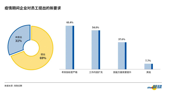改革的同时,为使高效敏捷性得以延续,企业正在重新定义岗位职责和工作流程,鼓励跨部门协作,这也为员工提出了新的要求。近7成受访者表示,其所在企业在疫情期间对员工提出了新的业务要求,如考核指标更严格与技能提升等。