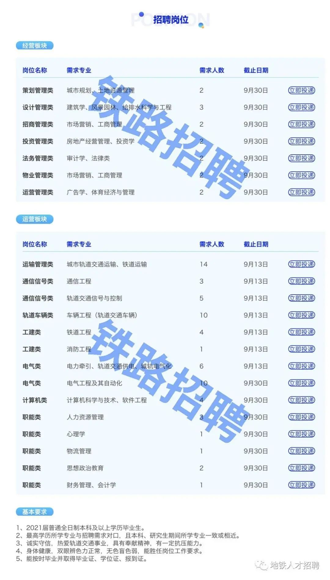 为积极响应国家、省、市加快恢复和稳定就业工作要求,助力国家“稳就业、保民生”工作,武汉地铁集团现全面启动2021届校园招聘工作,诚邀有志投身武汉轨道交通事业的2021届应届毕业生加入。