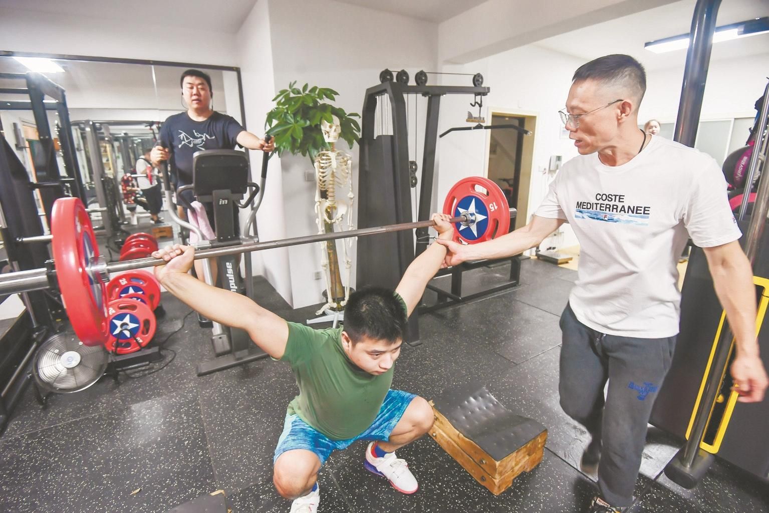 吴廉卿从事教学工作30年,有“健美国际级裁判员”、“国际级健美大师”等多个头衔,其研究生弟子但文娟、程智不仅常来工作室帮忙,也去社区户外健身区指导居民科学使用公共健身器材。