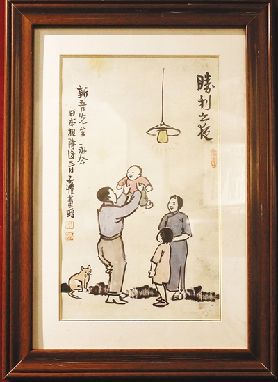 明亮的灯光下,父亲高高举起家里的幼子,幼子和母亲的脸上满是笑容……这幅乍看并不能体会其中深刻意味的小画,却因为旁边作家丰子恺留下的一行小字——“日本投降后三日”,而拥有了永世难忘的价值。