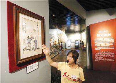 讲解员介绍丰子恺画作《胜利之夜》。