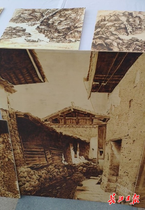 烙画展位前展出的作品。 记者张奔设 摄