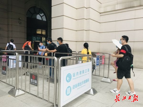 汉口站区办相关负责人介绍, 目前汉口站每日出发和抵达旅客有14万人左右,客流持续恢复,汉口火车站、地铁、公交等公共交通运输单位把核验健康码、测量体温作为维护公共卫生安全的常态化举措落实。“坚持登记核查不漏、体温检测不漏、核验标准不降,做好常态化防控。”