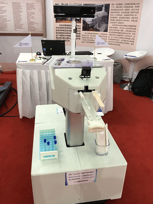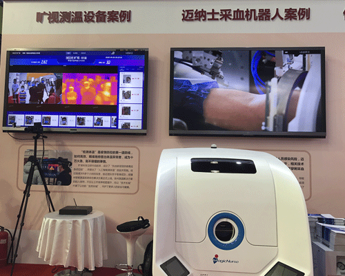 走入展厅,科技抗疫案例展示区集聚了测温设备、采血机器人、末端配送机器人、智能消杀机器人、咽拭子采样机器人等高科技设备,吸引了众多关注,也成为世界了解中国抗击疫情的窗口之一。