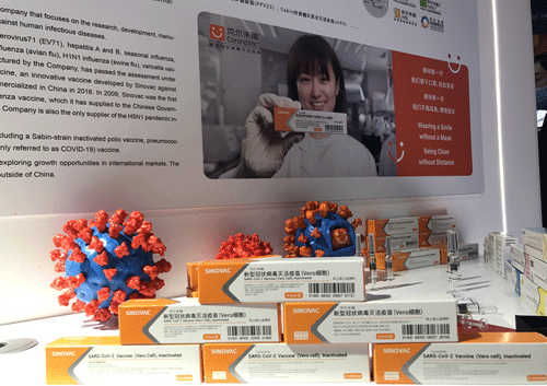 公共卫生防疫专题展区的另一个明星便是新型冠状病毒灭活疫苗。它聚集了大家的关注和期待。