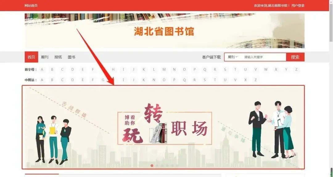如何访问大赛资源专题呢?1、登录湖北省图书馆官网(www.library.hb.cn)☞点击右上角【登录】。有省图借书证但未注册的读者请先进行注册;无证读者可先在线办理电子证。回到首页,点击【资源】-【所有资源】-【博看网】-【玩转职场】。2、关注“湖北省图书馆”公众号,点击【资源】-【数字资源】-【微刊】-【玩转职场】。