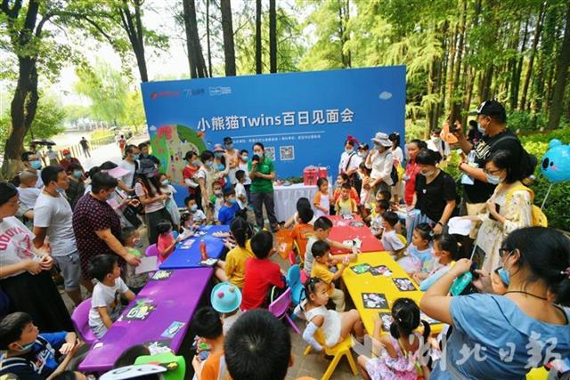 今年的自然嘉年华武汉站将动物元素融入进自然乐跑的活动中,近百名小朋友带着打卡任务冲出起跑线,他们在不同的动物场馆通过支付宝“野生小伙伴”小程序识别各种动物知识,从而集齐不同的徽章,获胜者最终收获了一枚本届自然嘉年华的纪念章。在小熊猫twins“欢喜坨”和“糯米鸡”百日见面会现场,大家通过电子大屏观看了两个熊猫小宝宝萌态可掬的模样,从讲解员的述说中了解了小熊猫妈妈美美在疫情期间怀胎四月生下它们的有趣故事。