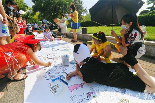 活动由阿里巴巴公益基金会主办、武汉市公园协会承办。早上7:30,武汉动物园门口已是人头攒动,市民带着孩子们早早排队入园。园内20米长卷《动物简史》绘画区,数十名装扮成小动物的小画师们已经趴在画布上认真地画出心中最喜欢的小动物。