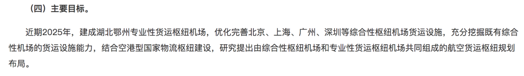 4日下午,国家发改委和国家民航局联合发布的《关于促进航空货运设施发展的意见》提出,目标在近期2025年,建成湖北鄂州专业性货运枢纽机场。