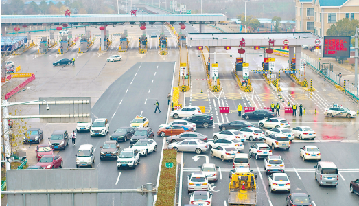1月23日,武汉出城岱黄高速府河收费站封闭,交警正全力疏导交通。武汉当天起暂时关闭离汉通道,有效地防止疫情向其他地区扩散,为阻止病毒传播争取时间和空间。长江日报记者陈卓 摄