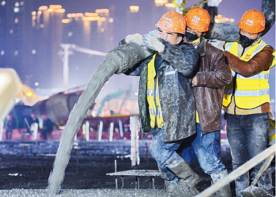 1月28日,蔡甸区火神山医院施工进入第五天,夜间工地亮起大灯,建筑工人们仍然在加紧施工。长江日报记者胡冬冬 摄