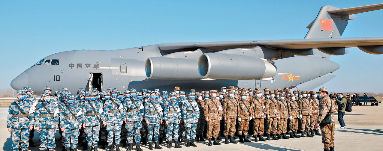 2月17日,8架空军运输机载着676名医护人员和50吨医疗物资抵达武汉天河机场。这是空军继1月24日后,第四次运输军队医护人员支援湖北疫情防控。长江日报记者詹松 摄