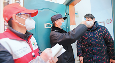 2月17日,武汉市全市总动员,开始开展为期3天的集中拉网式大排查。图为东湖新技术开发区关东街南湖社区,工作人员上门排查。长江日报记者史伟 通讯员应后威 摄