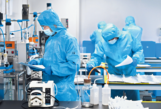 4月11日, 武汉明德生物科技股份有限公司争分夺秒抓复工生产同时,坚持疫情防控不放松。长江日报记者高勇 摄