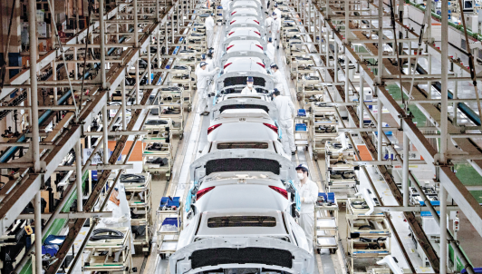 3月23日,武汉东风本田二厂总装车间,工人在流水线上生产。长江日报记者任勇 摄