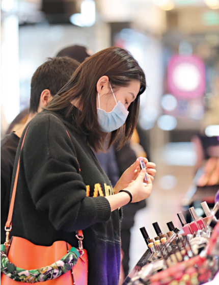 3月30日,武商广场恢复营业,顾客在商场选购化妆品。长江日报记者邱焰 摄
