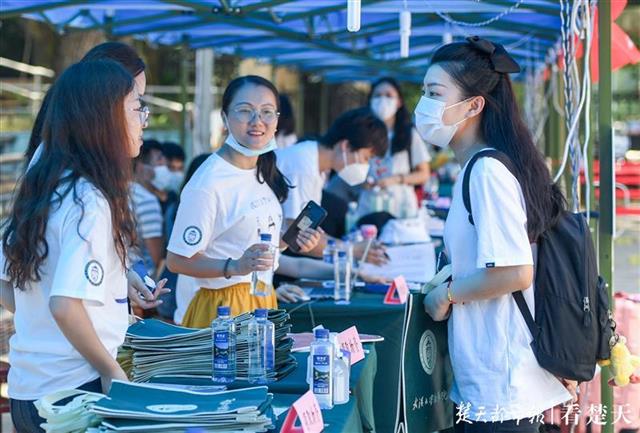 刷身份证、测体温、搭乘校车去宿舍……一切都井然有序。得知一名来自陕西的新生因骨折行动不便,信息管理学院辅导员雷婷早早就守候在迎新点,看到该新生到达后,立即迎上前去帮其办理报到手续。