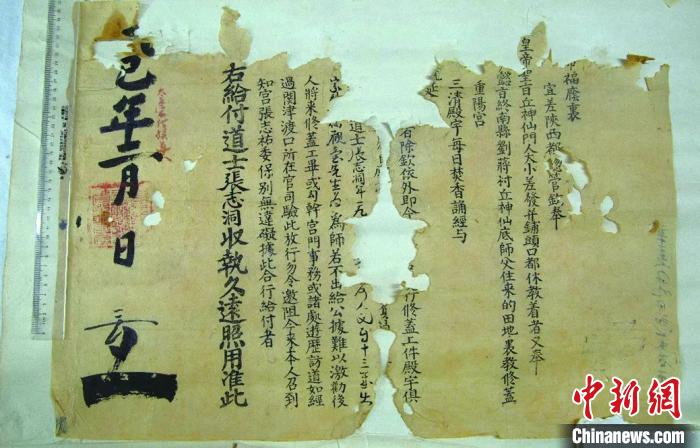 中新网太原9月7日电 (记者 胡健)中国现存最早的道教宫观——永乐宫发现近百件蒙元时期道教古籍文书,对研究蒙元时期全真教发展和永乐宫重建历史具有重要价值。