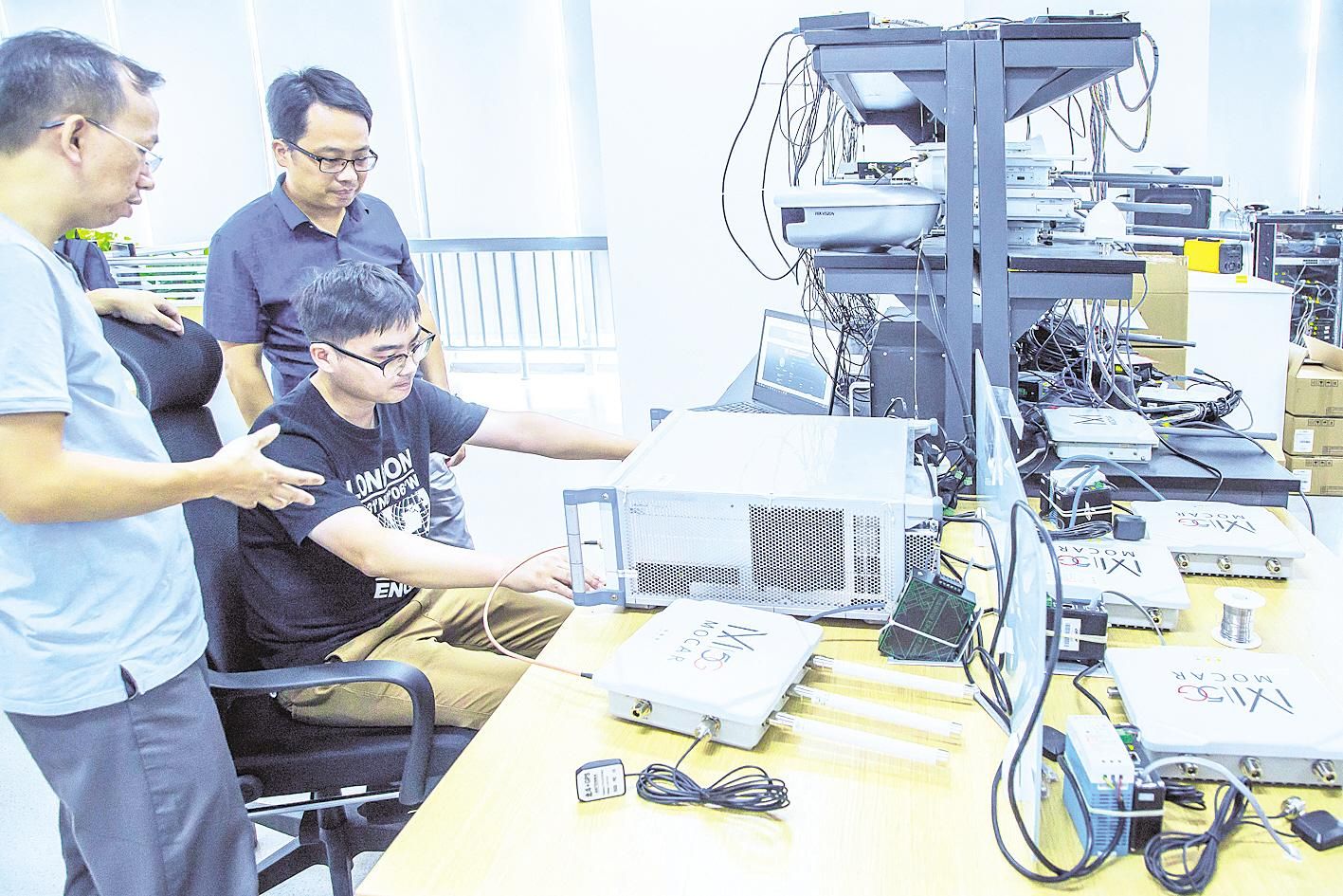 9月3日,位于武汉开发区的华砺智行研发工程师正在对5G路测单元进行测试。华砺智行(武汉)科技有限公司是行业领先的V2X车联网和智能交通核心设备及解决方案提供商。该公司参与国家智能网联汽车(武汉)测试示范区的建设运营,并加紧产品研发及迭代升级。