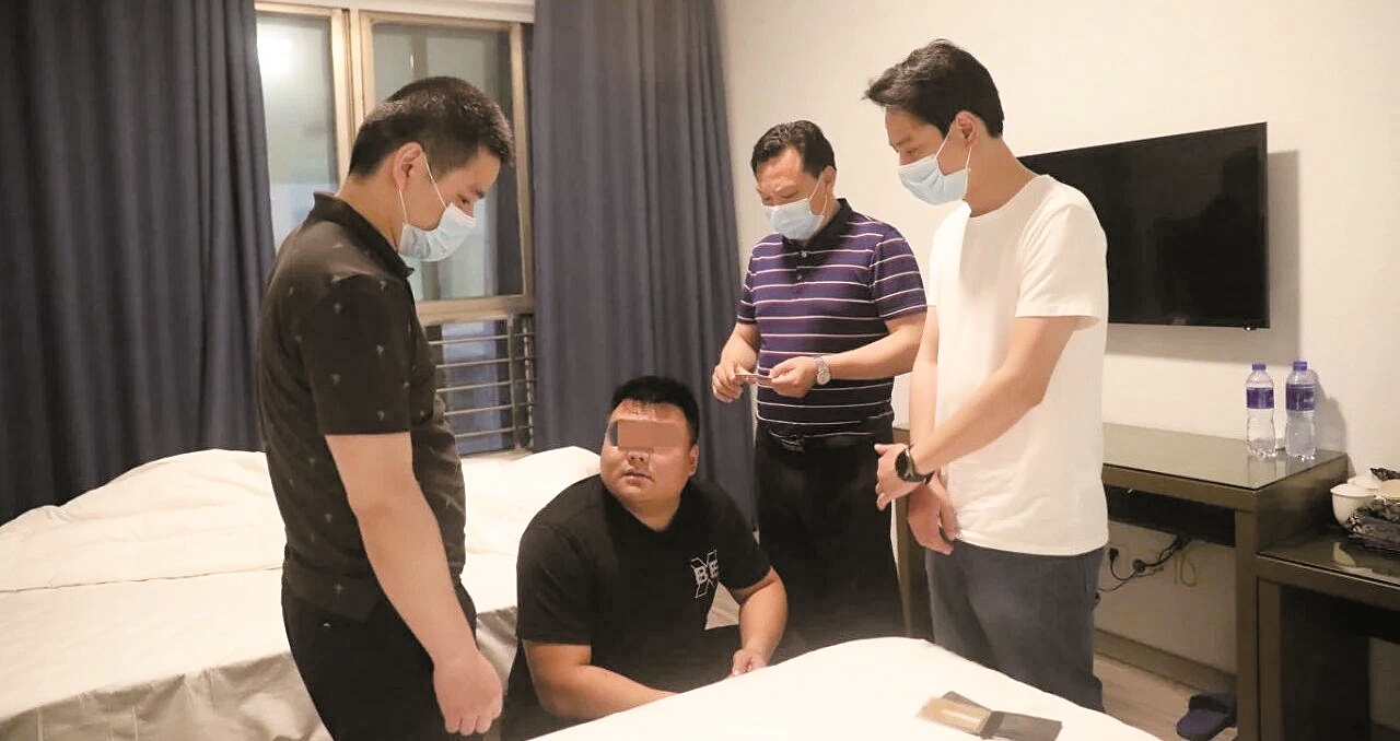 5月9日,钟祥警方开展收网行动,分赴荆州、潜江、襄阳等地,成功抓获15名犯罪嫌疑人,在荆州某宾馆等着继续“过账”拿“返利”的徐某等6人也在其中。